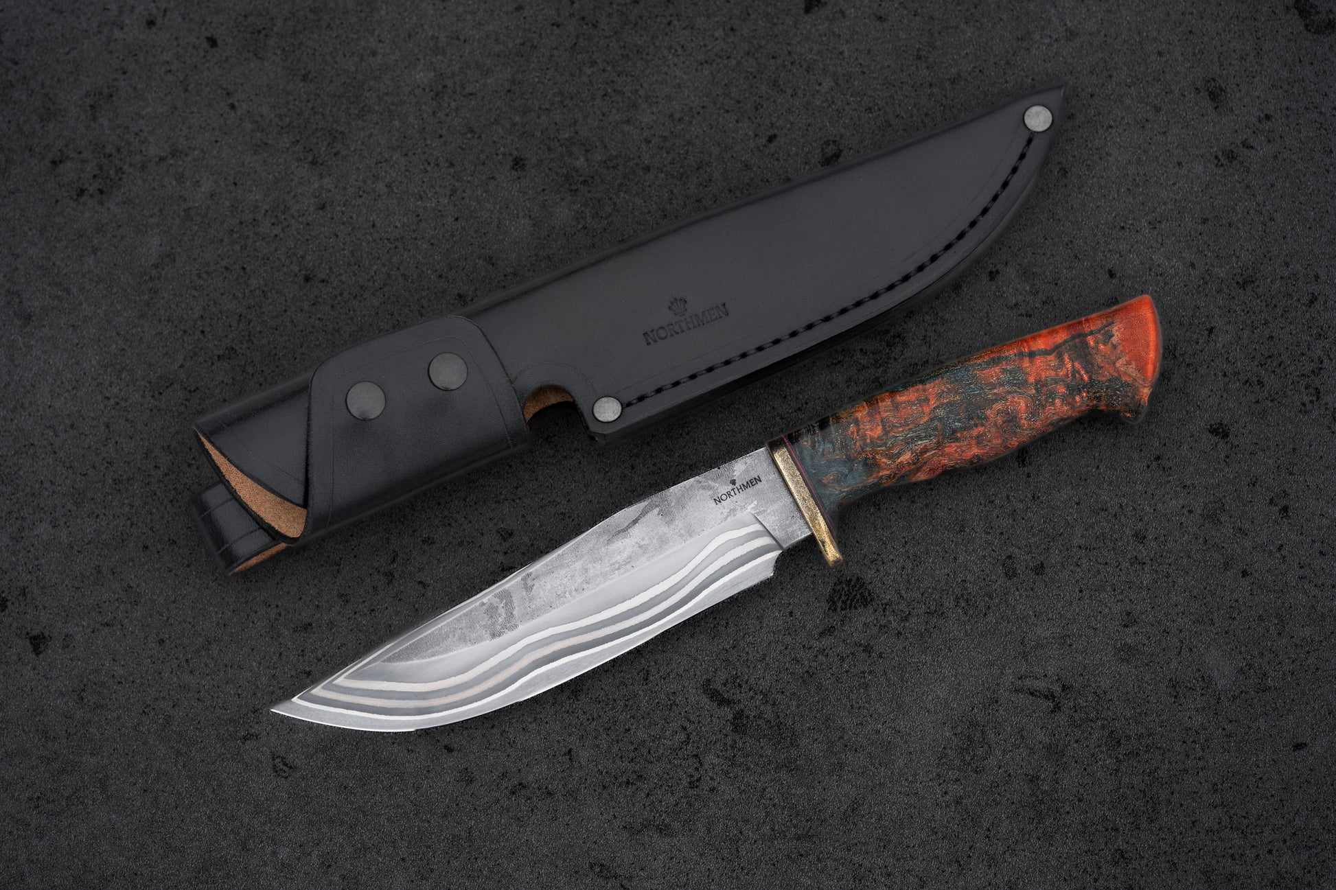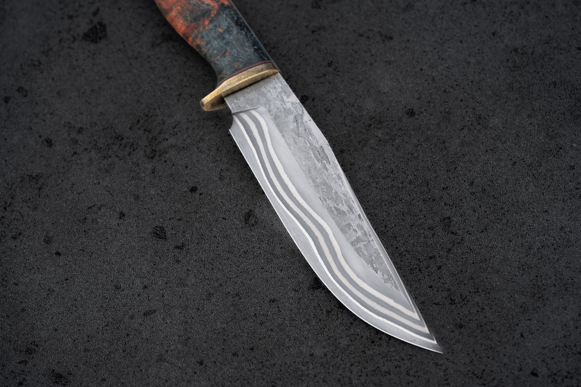 Custom made Bowie knife with Handforged Stainless Damascus blade. San Mai with N690Co core layer.